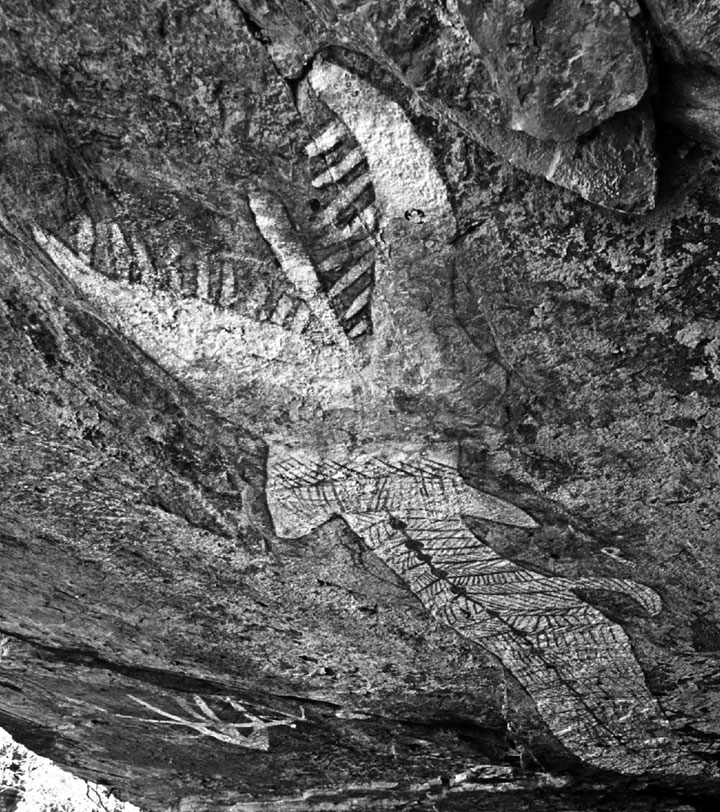 一些岩洞壁画暗示着所有人类社会似乎都会讲述的起源故事,这幅画来自澳大利亚北部阿纳姆地(Arnhem Land),描述的是一条“彩虹蛇”