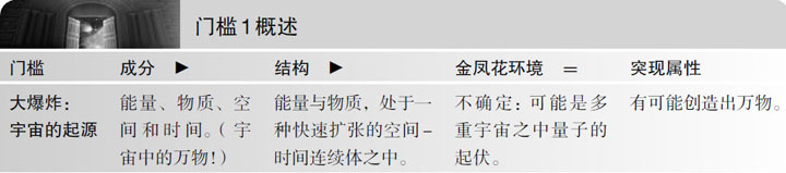 宇宙的形成是我们面对的第1道门槛,因为据我们所知,那一刻见证了我们周围万物的起源。那一时刻也是万物历史的开端(参见门槛1概述)。