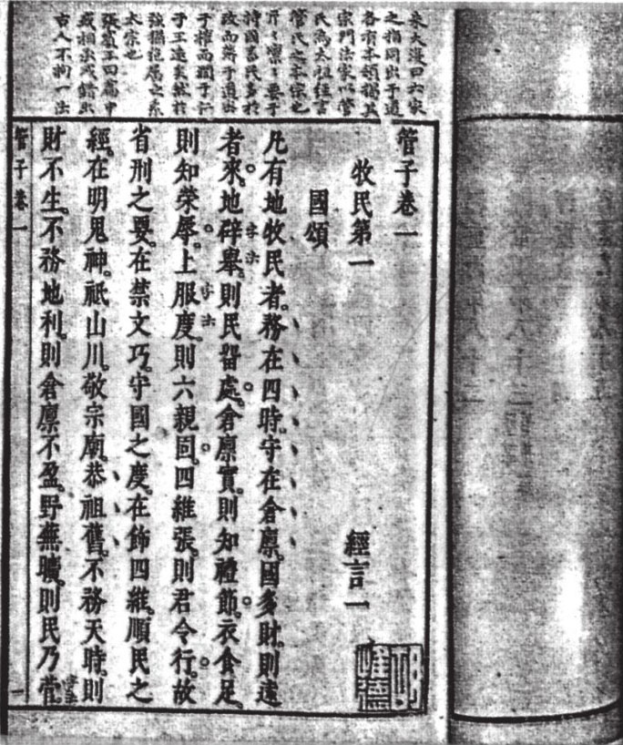 管仲留传下来的文字很多,思想庞杂,几乎是道家、儒家及法家的渊源,到西汉初期,刘向搜集到了564篇署名为“管仲”的文章,他比勘审定,定著86篇为《管子叙录》,这成为流传后世的《管子》母本。然而可叹的是,管子的思想在相当长的时间里并不被重视,他的人品及某些做法早在春秋战国时期就受到了学者的争议,在《论语·宪问》中就记载了这样一段对话,子贡说:“管仲怎么能算是仁者呢?齐桓公杀了公子纠,管仲非但不跟着死,还去当了仇人的相国。”倒是孔子讲了一句公道话,他说:“管仲一匡天下,人民到今天还受到他的恩赐,如果没有管仲,我可能还是一个披着头发的异族人。”