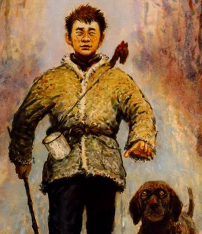 你虽然生下来从未接受过人类的抚摸,但这种被抚摸的狗的生理需求却十分强烈而旺盛。你伫立在山冈的树丛间,痴痴地望着那位剽悍的猎手和那条幸运的黄狗,一种孤独感在你心中油然而生。