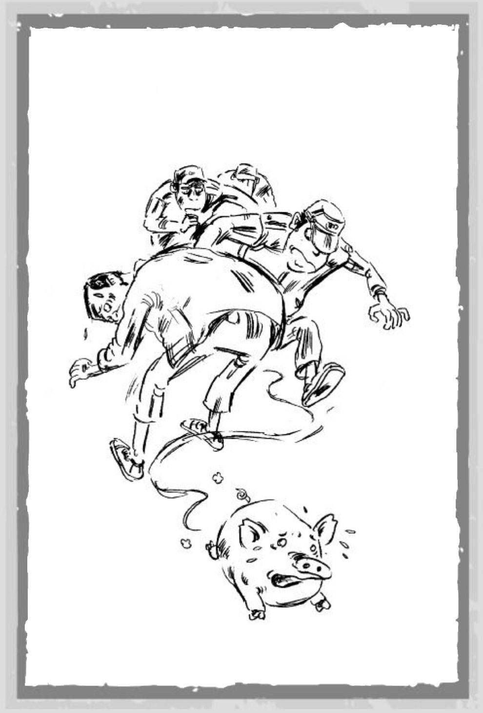学校保安听见他的喊声,纷纷朝我跑来,想要抓我。虽然小猪的身体肥胖,但毕竟体形小,还算灵活,在看门大爷和学校保安之间像一条鱼似的钻来钻去。正在操场上上体育课的同学看到我,全都哈哈大笑起来,七嘴八舌地说: