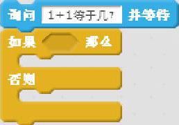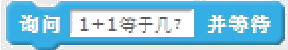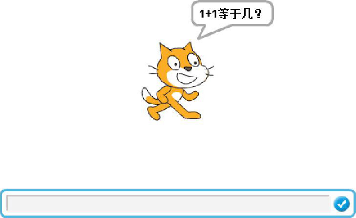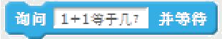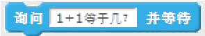 (8)点击脚本区的整个程序块,小猫咪给出了一个考题“1+1等于几?”,等待你的回答。