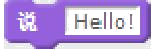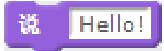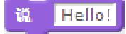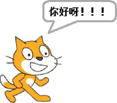程序块,运行结果为小猫咪说“你好呀!!!”。