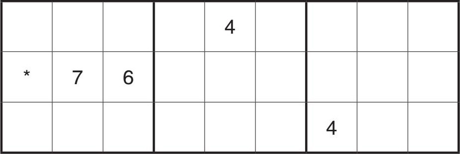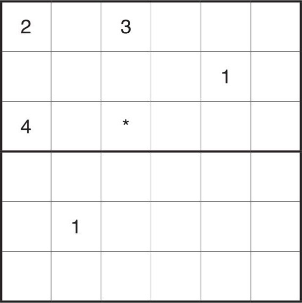 想想能否定下(2,2)的值?因为第二行中已有7个数字了,还差数字6和7没有填上,又因为第6列有数字7了,所以(2,6)不可能是7,所以(2,2)的值为7。