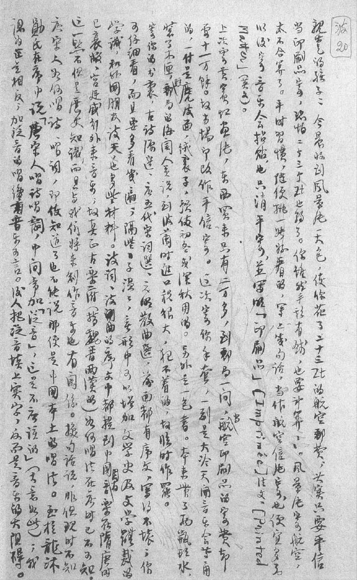 今年你十足二十岁,我们二人商量了好久,不知你喜欢什么,该送些什么东西给你留念;暂且买了一支Eversharp的钢笔,是金套的,怕你不喜欢;不知你现在需要么?我们可以托朋友带给你。否则等你出国时拿去,随便你好了,希望来信告诉我们。