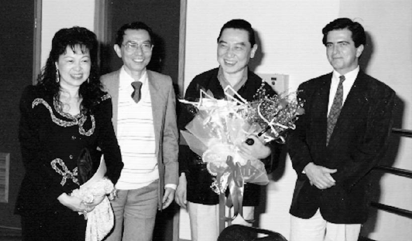 傅聪傅敏在北京举办的家书墨迹展上与金圣华(左一)的合影(一九八五年)