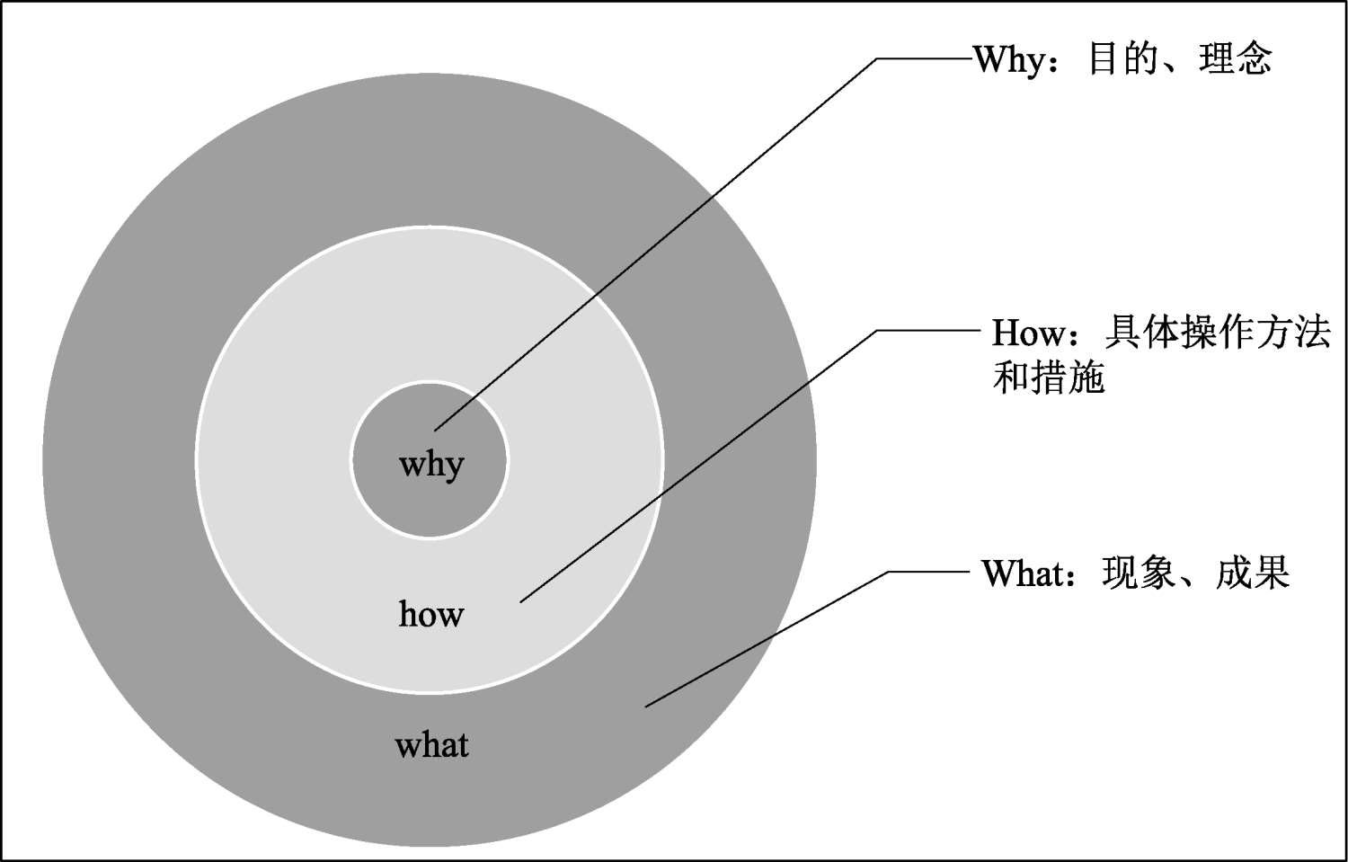 在探索产品经理该如何运用黄金圈法则之前,请让笔者先来分析一下黄金圈,让我们从黄金圈的外圈讲起,再一层层进入核心。