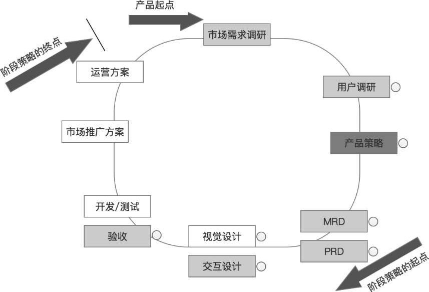 在整个产品策略流程中,产品经理的工作内容如下图所示。
