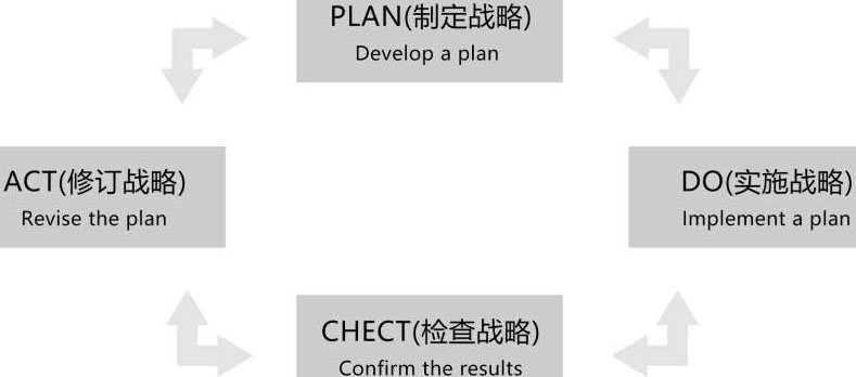 PDCA是指Plan、Do、Check、Act,即在制定战略时,首先做出假设,然后制定计划并付诸实施,再将结果用于制定新的计划,如下图所示。