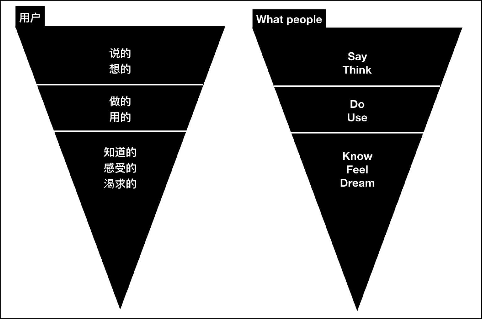 探索用户的想法能让产品经理了解用户的主观感受。了解用户的感觉赋予产品经理与用户“共情”的能力。“共情”能让产品经理获得用户的隐性要求,比如,用户无法用语言描述的感觉。通过挖掘、理解用户的渴求,产品经理能感知用户的美好愿景,这是另一种形式的隐性需求。