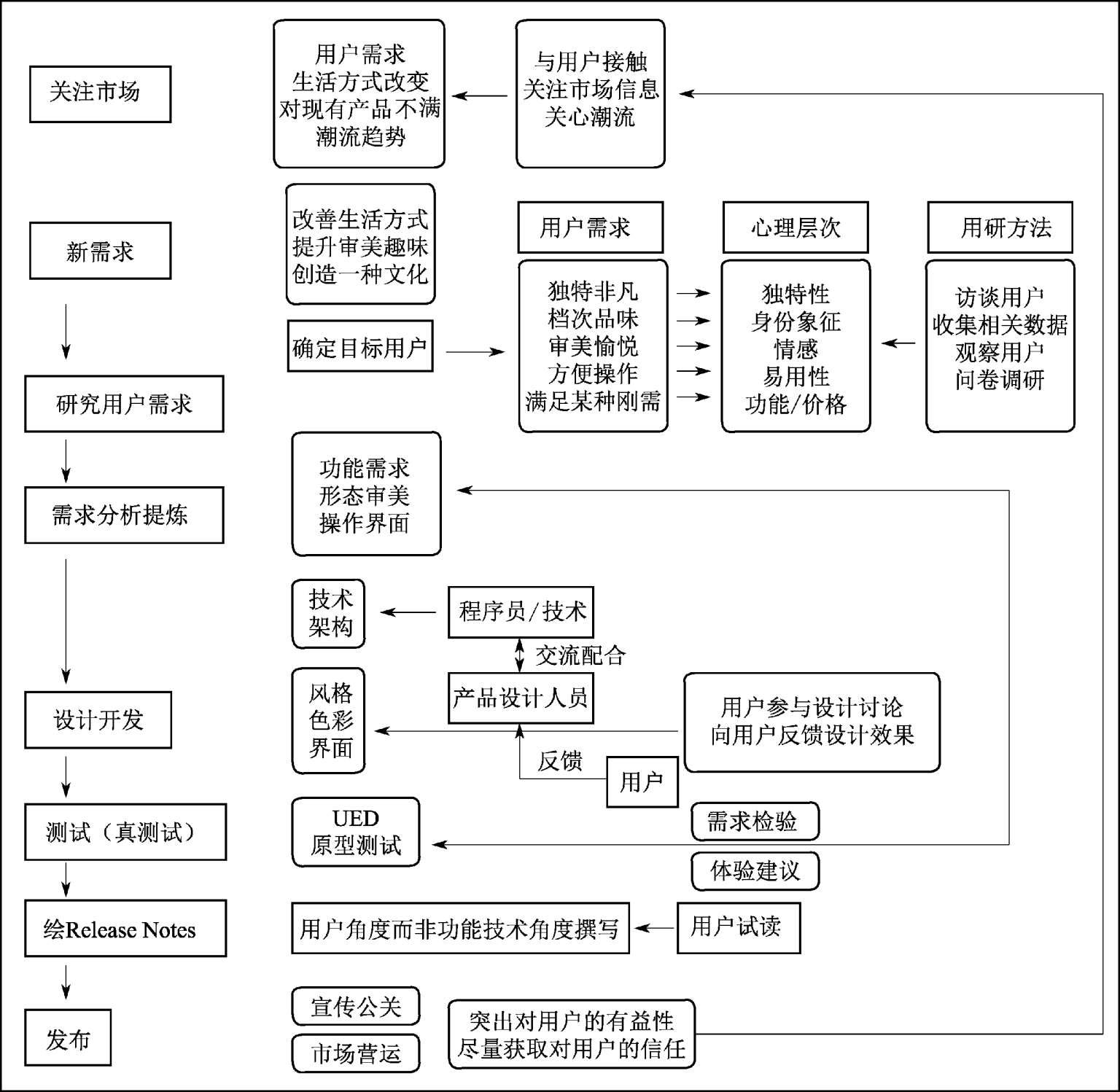 在以用户为中心的设计流程中,产品经理要关注被设计的事物本身(如对象、交流方式、业务逻辑、界面、服务等),并不断寻求不同的方法以确保这些设计能够满足用户的需要。