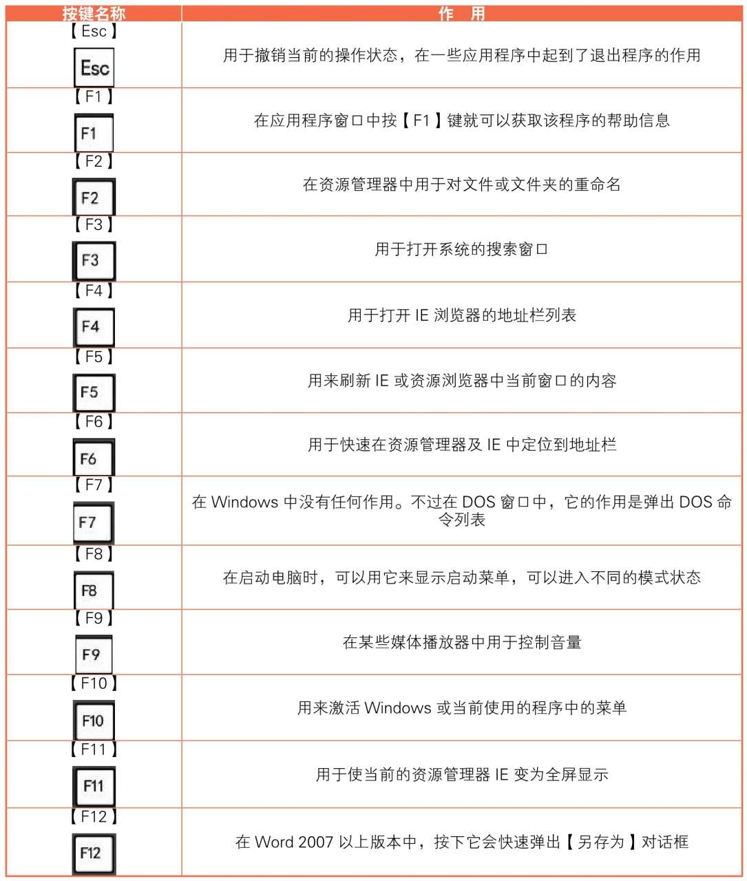 功能键区位于键盘最上方,共有13个键,包括【Esc】键和【F1】~【F12】键,如下图所示。