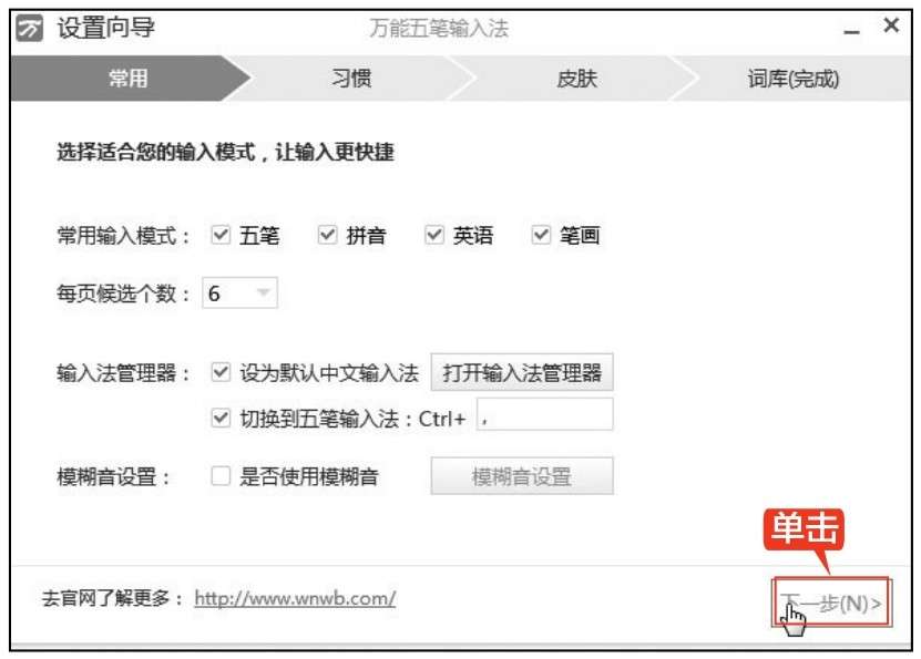 第2步 选择适合自己的常用设置后,单击【下一步】按钮。