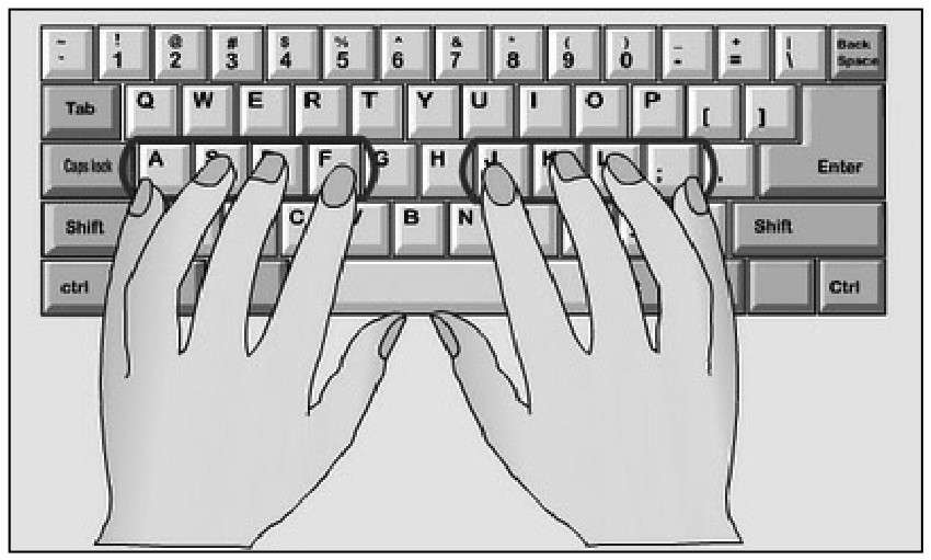 (1)手腕保持平直,手臂保持静止,全部动作只限于手指部分,严格按照十指分工来击键。