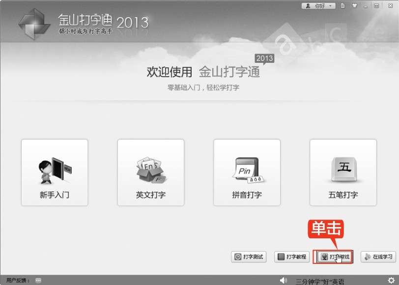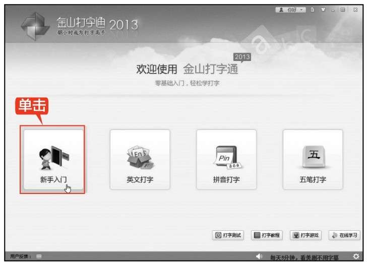 第4步 在金山打字通2013主界面中,单击【新手入门】按钮。