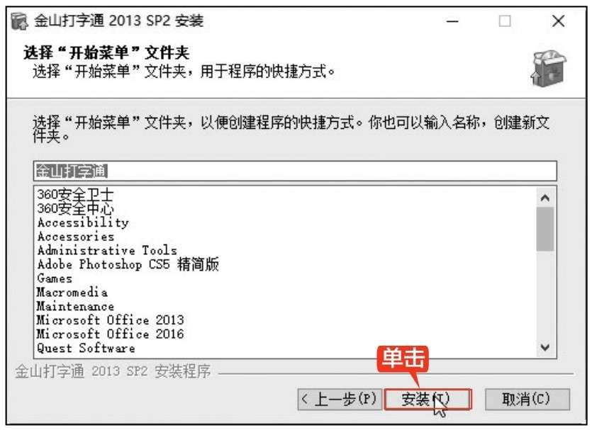第6步 在进入的【选择“开始菜单”文件夹】界面中,单击【安装】按钮即可。