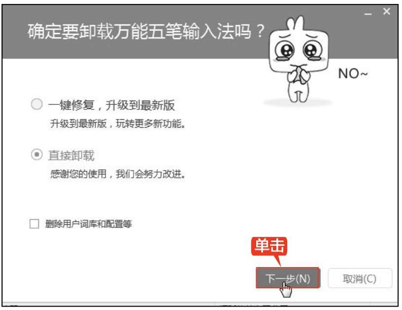 第3步 在出现的对话框中选择【直接卸载】单选项,单击【下一步】按钮。