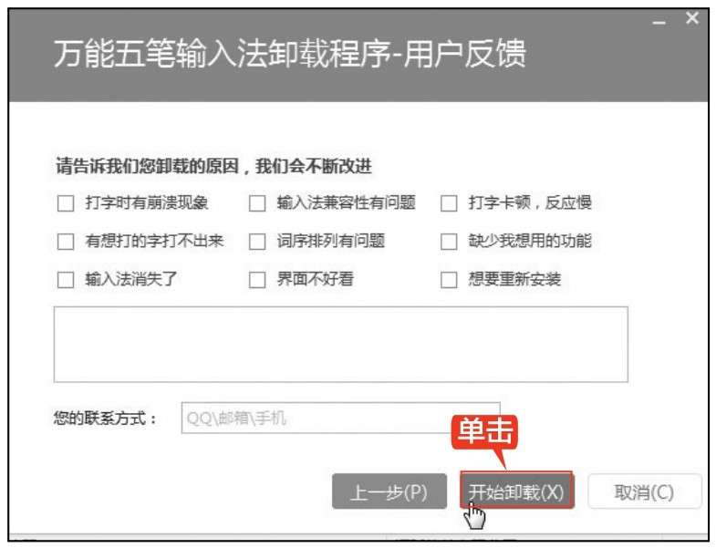 第4步 选择相应的卸载原因(也可不选择)后,单击【开始卸载】按钮。