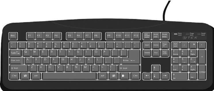 键盘是指经过系统安排操作一台机器或设备的一组键,主要的功能是输入资料。电脑键盘是电脑的外设之一,通过键盘可以输入字符,也可以控制电脑的运行。通常,电脑键盘由矩形或近似矩形的一组按钮或者称为“键”组成,键的上面印有字符。大部分情况下,按一个键就打出对应的一个符号,如字母、数字或标点符号等。不同的输入法定义了不同的输出符号。