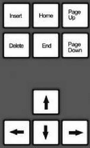 编辑键区在主键盘右侧,由10个键组成,主要用于移动光标和翻页,如下图所示。