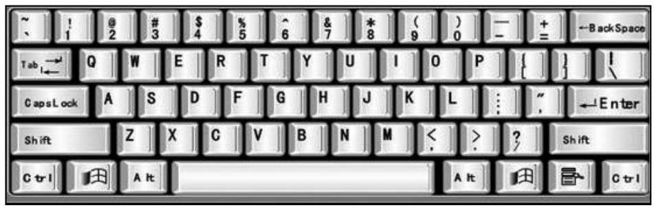 主键盘区是键盘区域中最大的部分,也是使用最为频繁的区域。它位于键盘的左下方,分为字母键、数字键、控制键和符号键等,如下图所示。