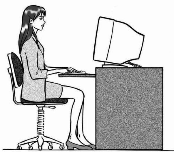 (2)身体可略倾斜,离键盘的距离约为20~30厘米,眼睛距离显示器的距离为30~40厘米,视线与显示器成15°~20°。