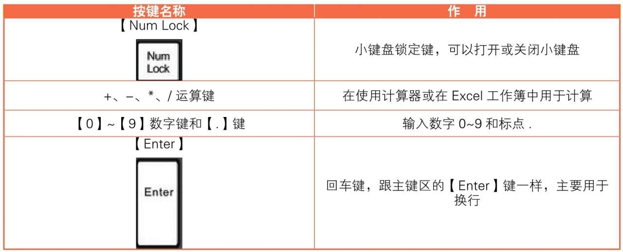 (3)辅助键区。主要是输入数字0~9以及加(+)、减(-)、乘(*)、除(/)等运算符号。
