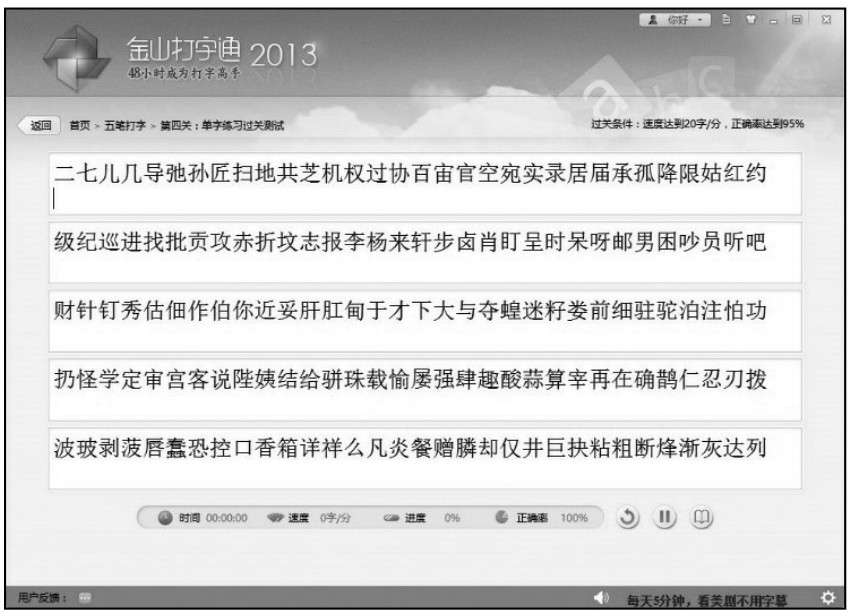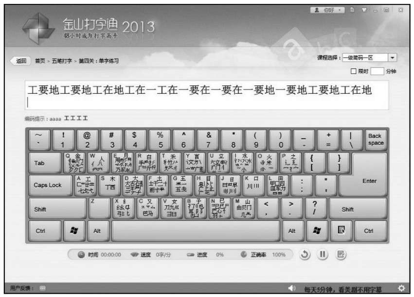 接下来介绍如何用金山打字通软件进行输入单字的练习。