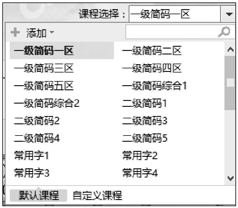 第4步 单击右上方【课程选择】右侧的下拉按钮,可以在出现的下拉列表中选择课程内容,也可以自定义课程内容。