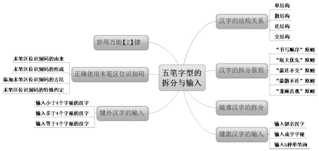 通过前面的学习,读者已经掌握了打字指法和字根的分布,除此之外,在使用五笔输入法时,还要掌握汉字的结构划分、拆分汉字的原则和输入汉字等内容,这样才能正确地输入汉字。