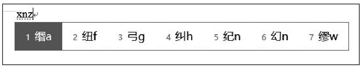 例如,“纠”字,在敲击完第1个和第2个字根所在键位后,不记得第3个字根的所在键位,就可以直接敲击【Z】键,如下图所示。
