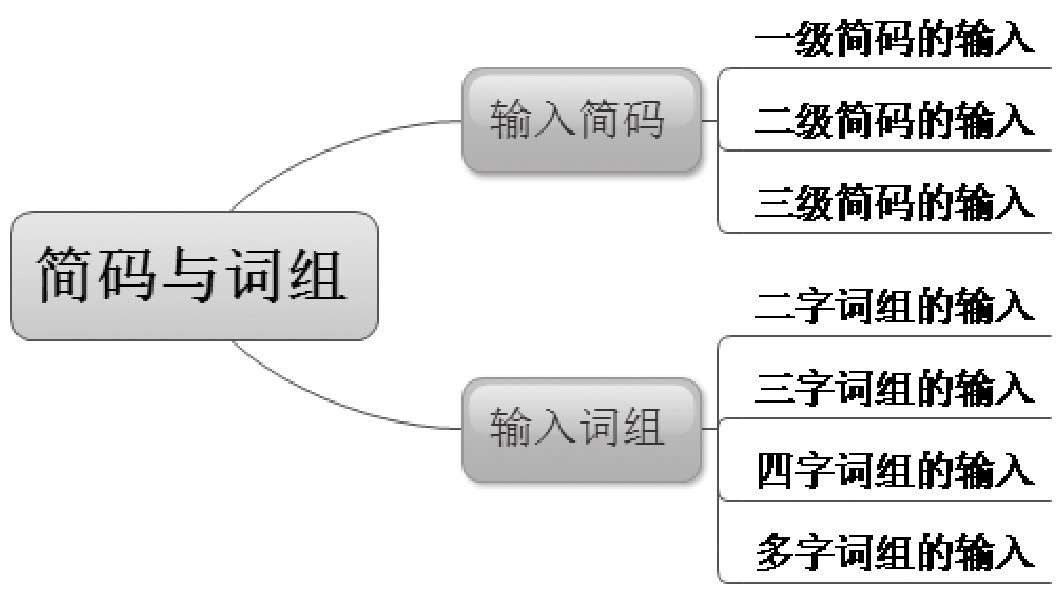 每个汉字的编码最多有4码,如果每码都输入太浪费时间了,所以为了提高五笔输入法输入汉字的速度,五笔输入法制订了一级、二级和三级简码输入以及词组输入。本章就来介绍一下输入简码与词组。