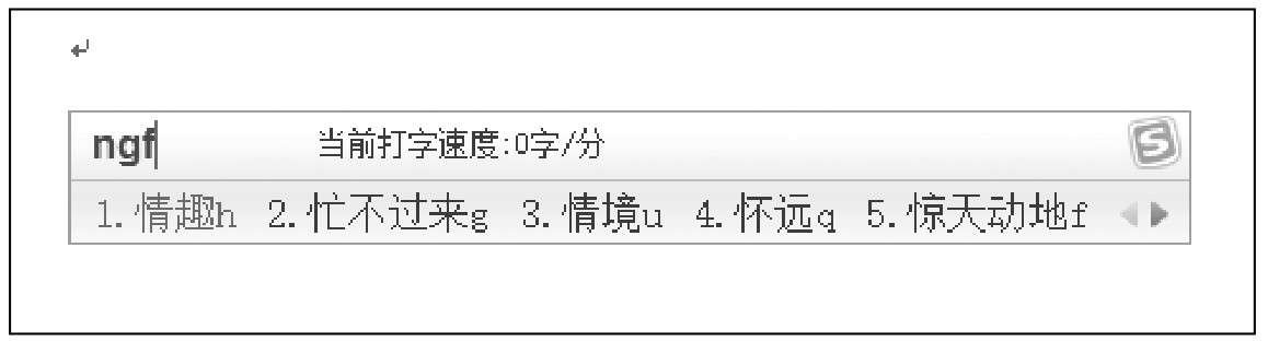 例如,输入“中”字,先按【K】键,再按空格键即可,如下图所示。