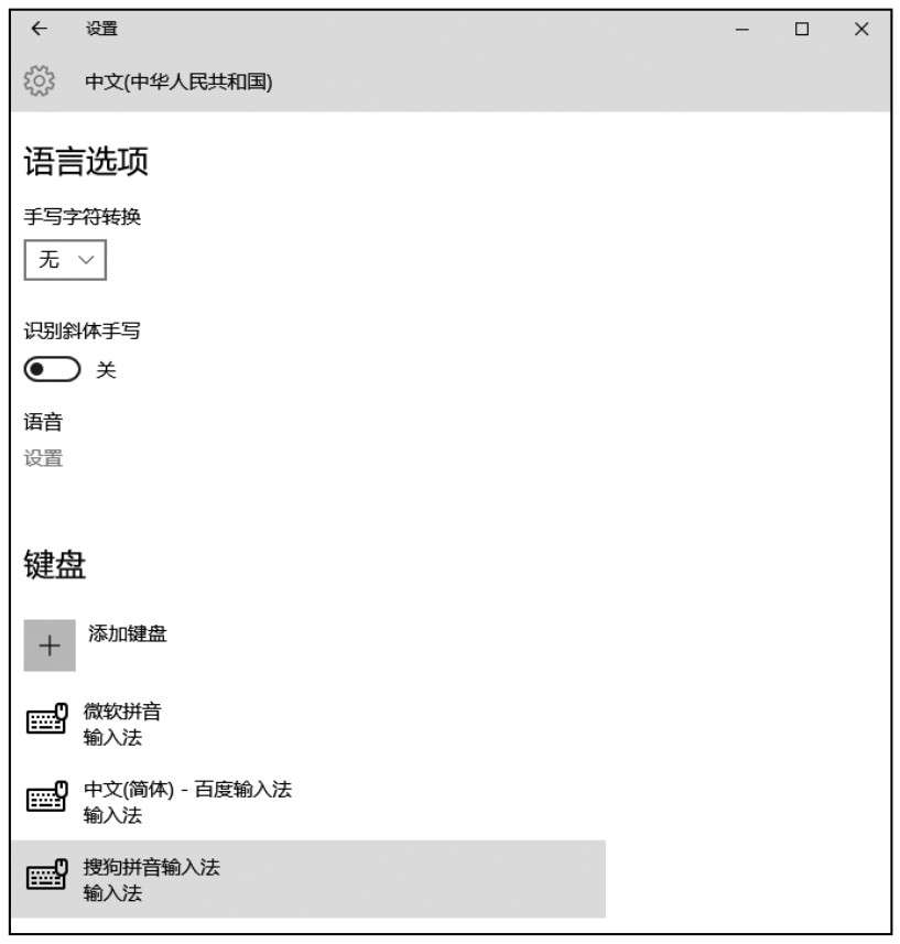 第2步 在出现的【中文(中华人民共和国)】页面中,单击【添加键盘】选项。