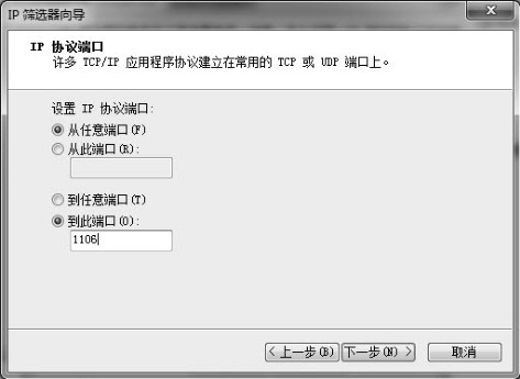 选中“从任意端口”“到此端口”单选项,此端口端口号设置为1106。