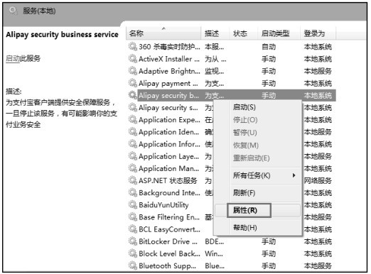 选定要启动的服务后,右键单击该服务,在弹出的列表中单击“属性”选项。
