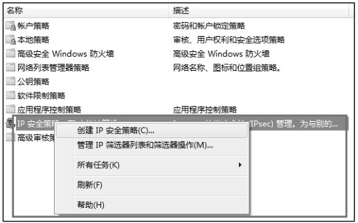 右击“IP安全策略 在本地计算机”选项,在弹出的列表中单击“创建IP安全策略”单选项。