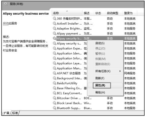 选定要启动的服务后,右键单击该服务,在弹出的列表中单击“属性”选项。