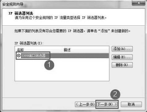 选中“3389”端口筛选器”单选项。