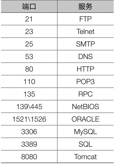使用TCP协议的常见端口主要有如下几种。