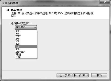 在下拉列表中选择IP协议类型为“TCP”。