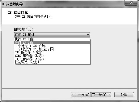 在下拉列表中选择IP流量的目标地址。