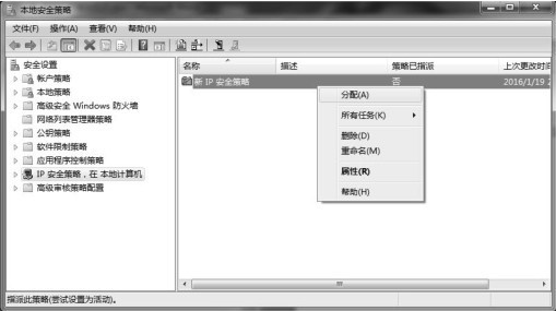 右击新建的IP安全策略,在弹出列表中单击“分配”单选项,完成设置。