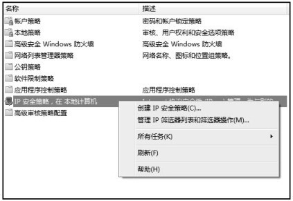 右击“IP安全策略 在本地计算机”选项,在弹出的列表中单击“创建IP安全策略”单选项。