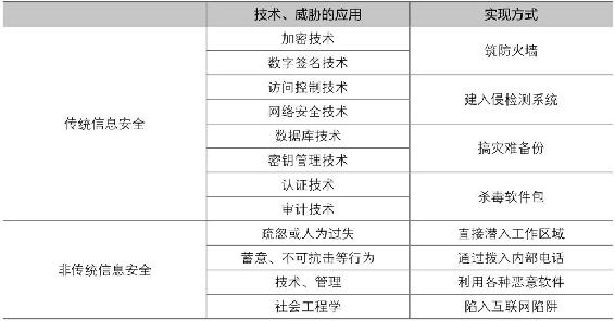 以社会工程学为代表的非传统信息安全是“9·11”事件之后在信息安全领域凸显出来的一大威胁。进入21世纪以来,信息安全专家越来越意识到“非传统信息安全”延伸的重要性,主张突破传统信息安全在观念上的指导性被动,转而主动地分析人的心理弱点,同时改进技术体系和管理体制存在的不足,从根本上改变信息安全的被动局面。