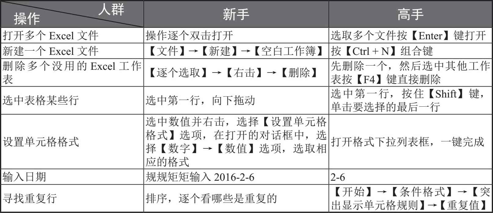 1.3 一张表告诉你新手和高手的区别