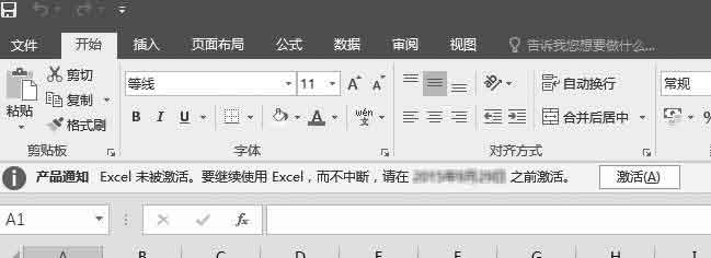 4 打开Excel 2016之后,用户会发现工作区上方提示Office未激活,单击【激活】按钮,输入激活码即可。