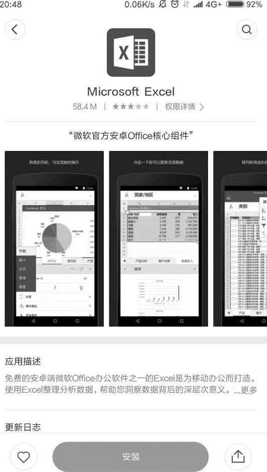 1 在手机中的应用商店找到“MicrosoftExcel”安装文件。
