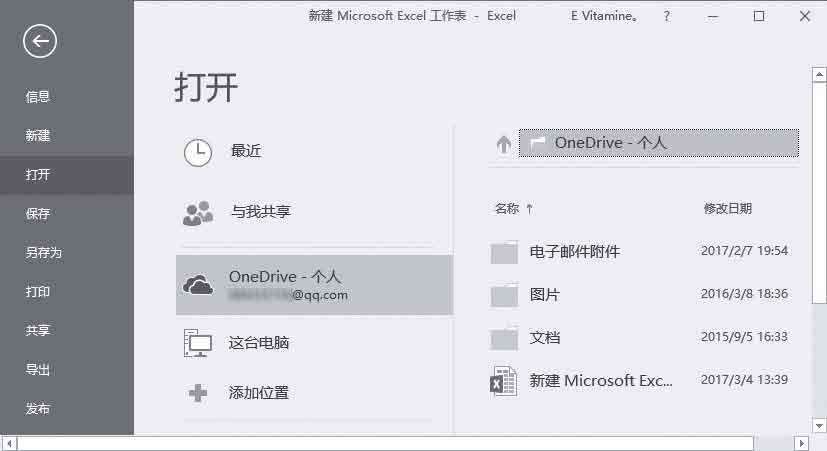 4 当需要再次打开文件时,同样在【文件】选项卡中,选择【打开】选项卡,在打开的界面中选择【OneDrive-个人】选项。