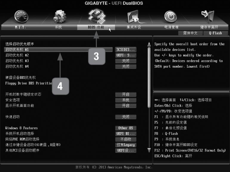 4 在下面的功能列表中单击【启动优先权 #1】后面的按钮。